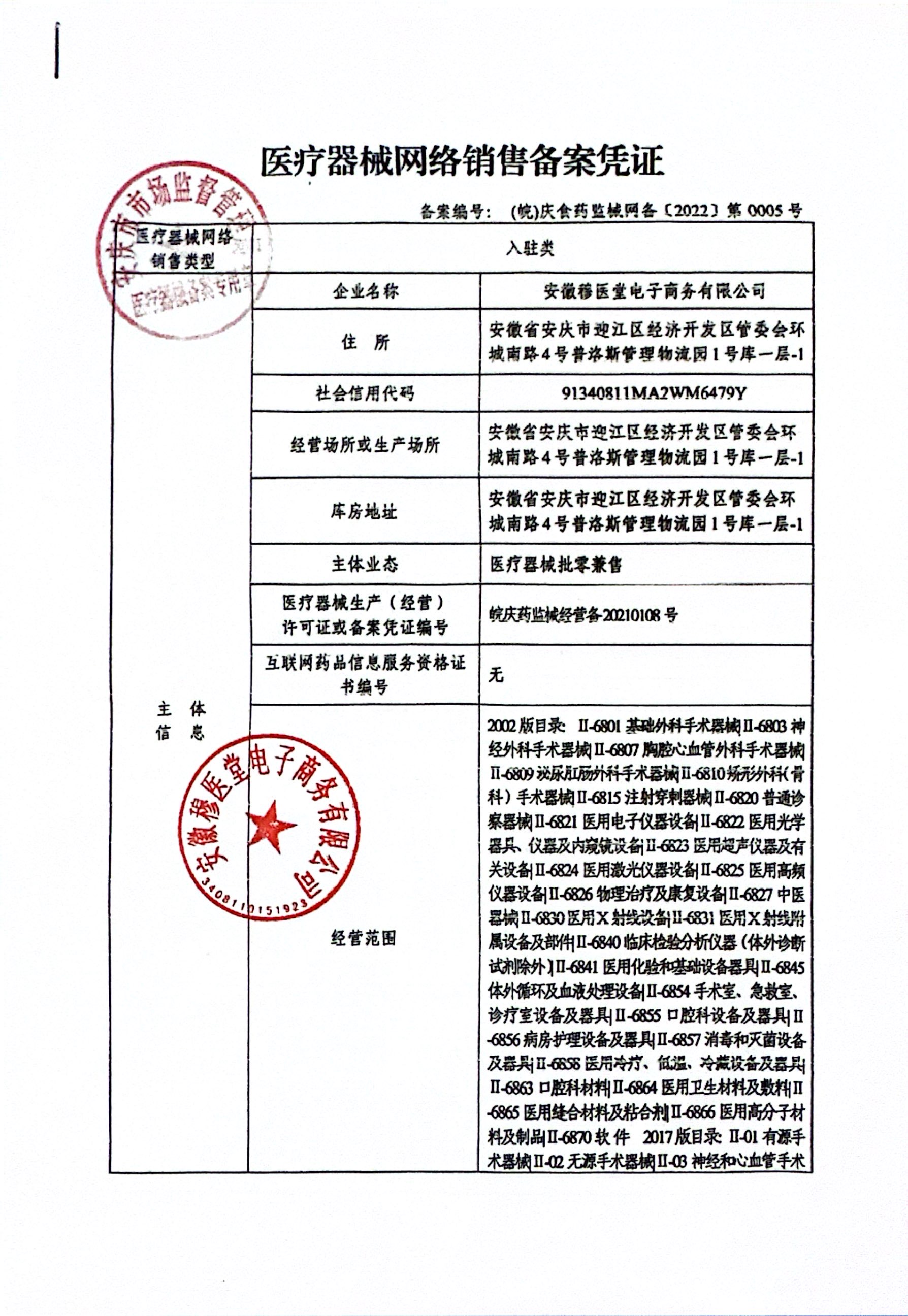 公司以授權(quán)品牌“穆一堂”,已經(jīng)在淘寶、京東、拼多多、百度健康商城、快手、美團(tuán)等多個主流電商平臺開通店鋪,公司運(yùn)營資質(zhì)產(chǎn)全,獲得了:醫(yī)療器械經(jīng)營備案憑證、醫(yī)療器械網(wǎng)絡(luò)經(jīng)營備案、食品經(jīng)營許可證、互聯(lián)網(wǎng)醫(yī)療器械信息服務(wù)資格證、商標(biāo)授權(quán)等資質(zhì)。經(jīng)營品類涵蓋了前列腺系列醫(yī)療器械,如凝膠、栓劑、膏貼等,還新推出了男科、婦科健康產(chǎn)品,以多品類產(chǎn)業(yè)格局,構(gòu)建此類用戶一站式健康服務(wù)業(yè)體系。